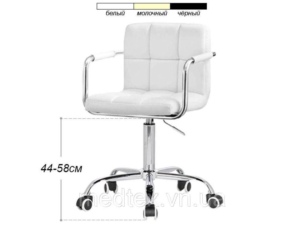 Показати оптові ціниСтілець для майстра з підлокітниками поєднує в собі практичність і витончений зовнішній вигляд. Сидіння зі спинкою виготовлене з міцного зносостійкого шкірозамінника — поліуретану, з декоративними строчками. Якісний наповнювач робить стілець зручним і не жорстким. П'ятипроменевахрестовина з маневровими поліуретановими колесами забезпечує тихе та легке пересування.