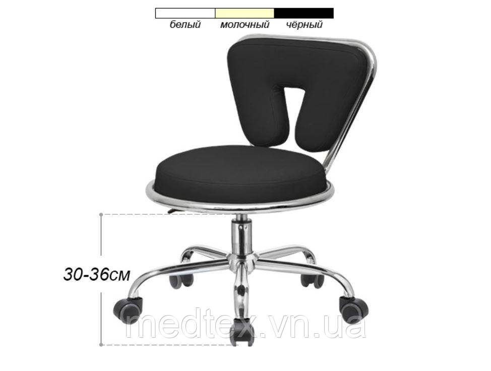 Показати оптові ціниЦей стілець —практичне й елегантне рішення для майстра педикюру. Вибравши цю модель стільця, Ви підкреслите індивідуальність і стиль Вашого салону, косметологічного кабінету або студії.Сидіння з комфортною спинкою виготовлене з міцного зносостійкого шкірозамінника — поліуретану. Якісний наповнювач робить стілець зручним і не жорстким. П'ятипроменевахрестовина з маневровими поліуретановими колесами забезпечує тихе та легке пересування.