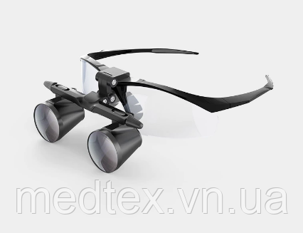 Бінокуляри зі збільшенням дають глибоке і чітке зображення, тим самим знімаючи навантаження на очі. Дана модель має незалежне налаштування міжзіничної відстані, що дозволяє максимально індивідуалізувати лупи. Спеціальна знімна оправа для використання індивідуальних міопічний лінз для операторів з короткозорістю (на вимогу). Прорезиненная оправа з швидкознімними заушникамиі зручною петлею для фіксації бинокуляр на голові оператора.