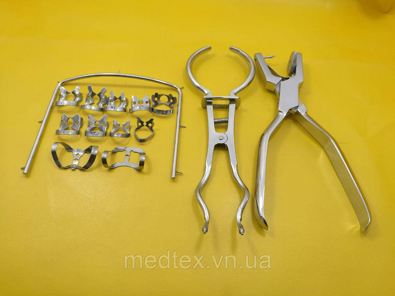 Показати оптові ціниНабір для коффердама, раббердама у зручному кейсі для зберігання, виготовлений зякісної сталі. До набору входять клампи 9 шт., пробійник, щипці Ivory або Brever на вибір.